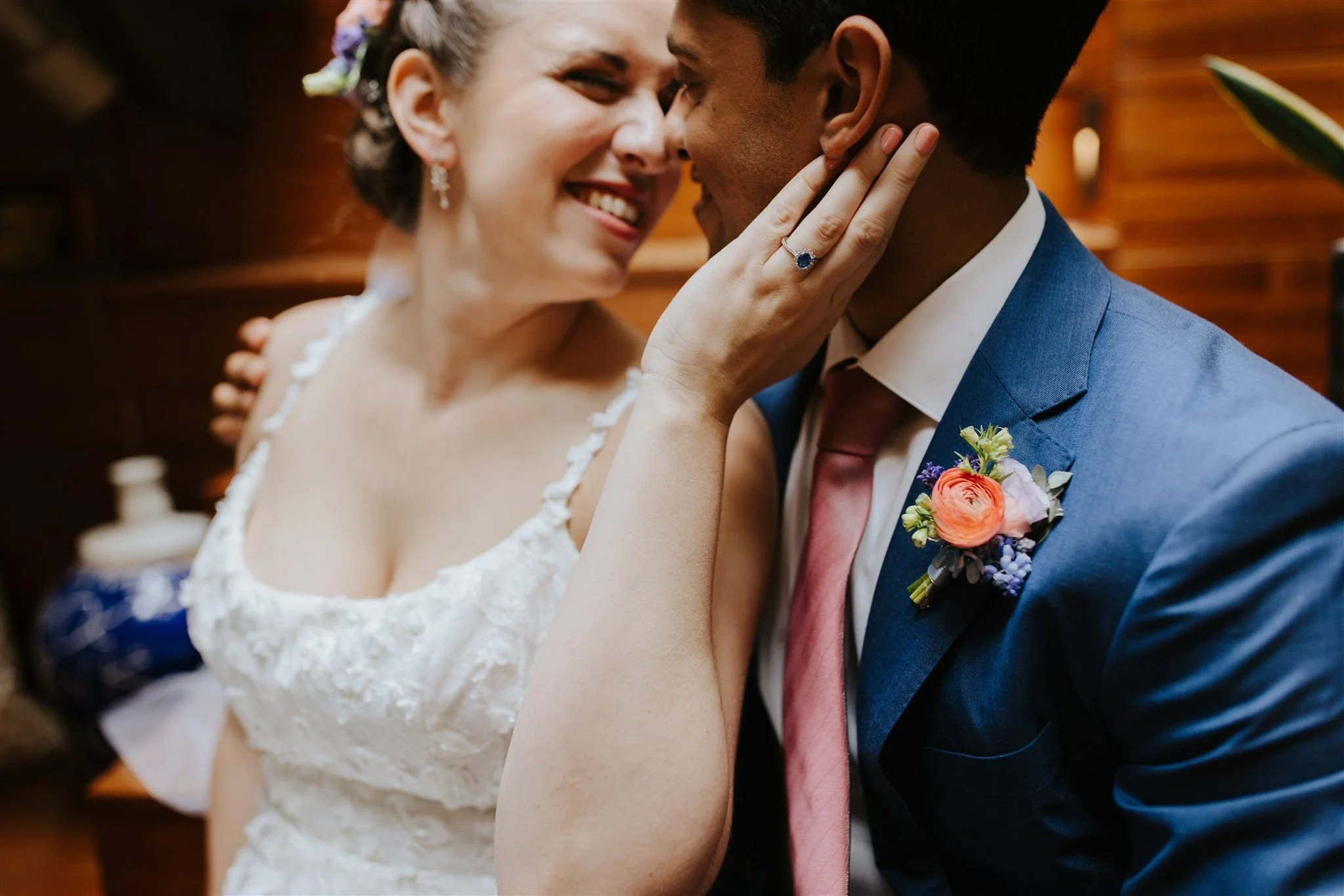 For Leah’s hair comb (still one of our absolute favorites!) we used similar floral found in her bouquet with an added textural touch of grape hyacinth. And because those hyacinth’s looked so good, we added them to Vivek’s juicy boutonniere alongside our favorite bout flower, the ranunculus. A perfect match!